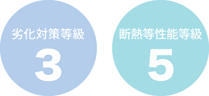 エアーストロング工法は、「住宅の品質確保の促進等に関する法律」における「劣化対策等級3」「断熱等性能等級5」に対応できる工法です。