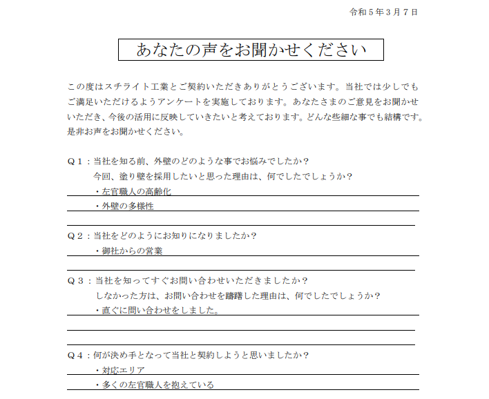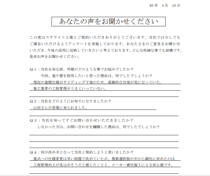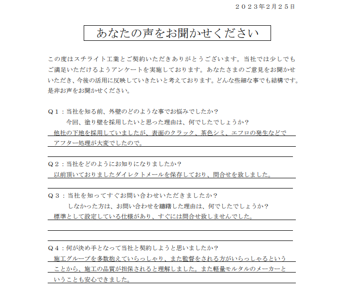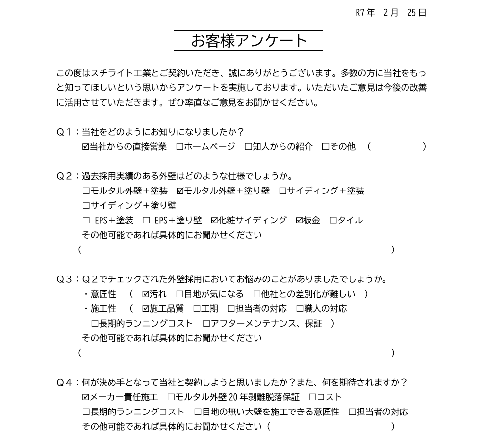 2025.02.25S様 メーカー責任施工が決め手で採用決定!