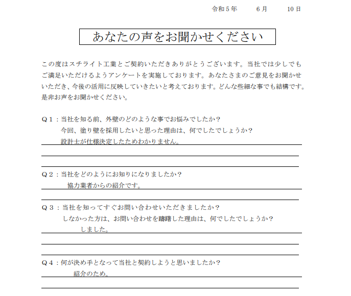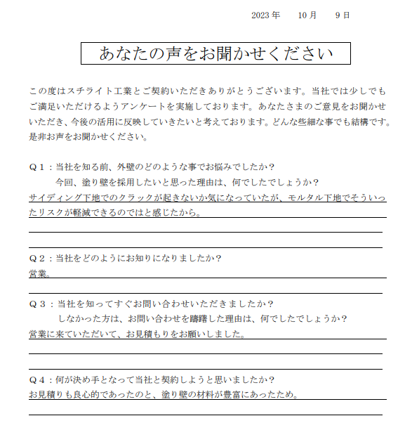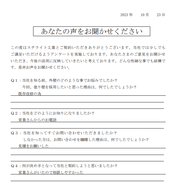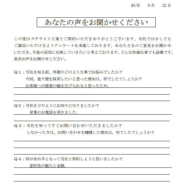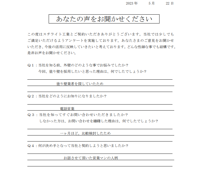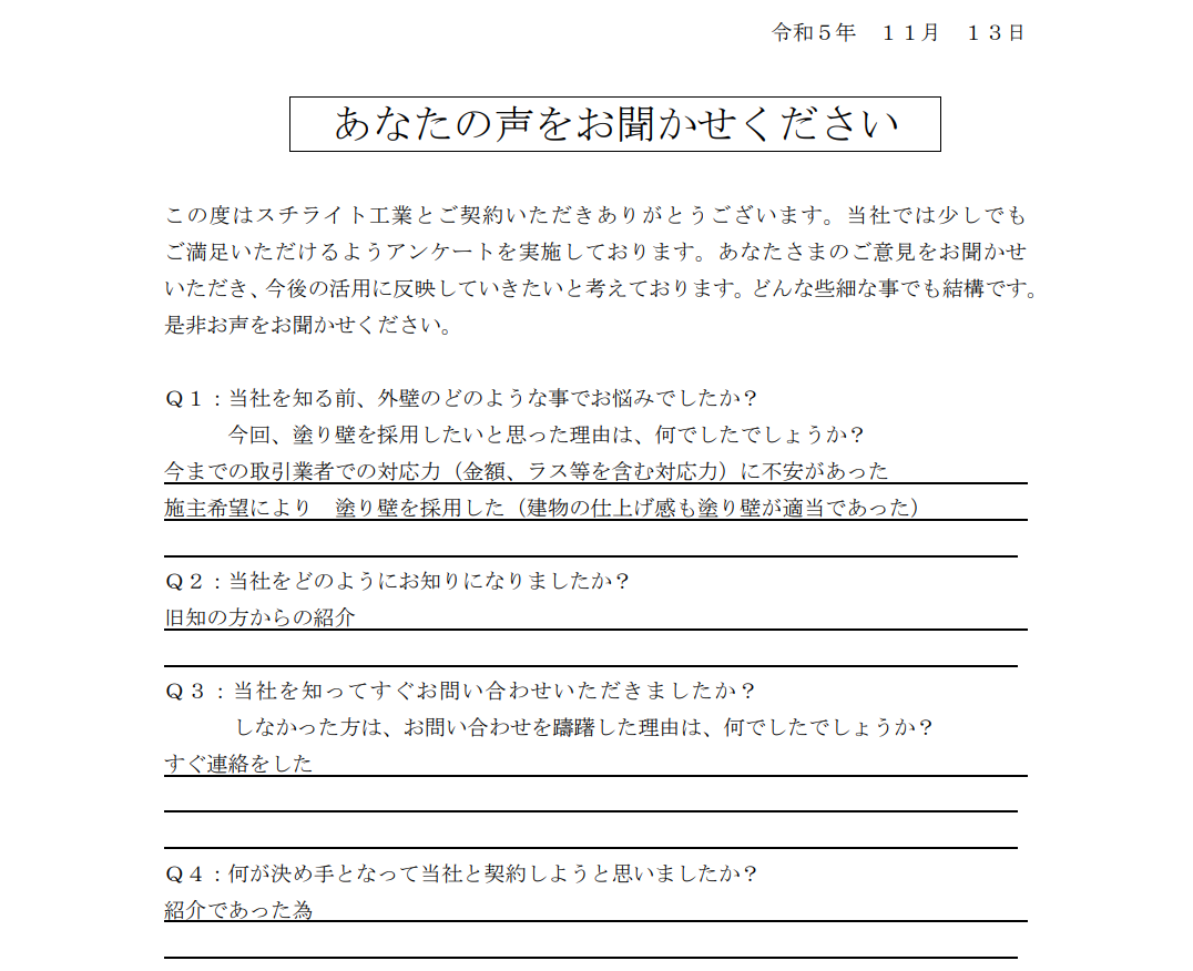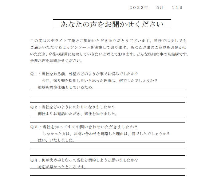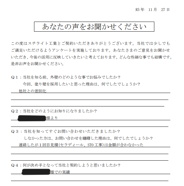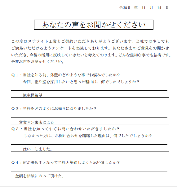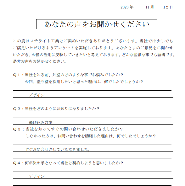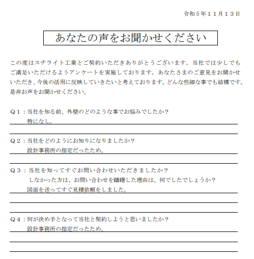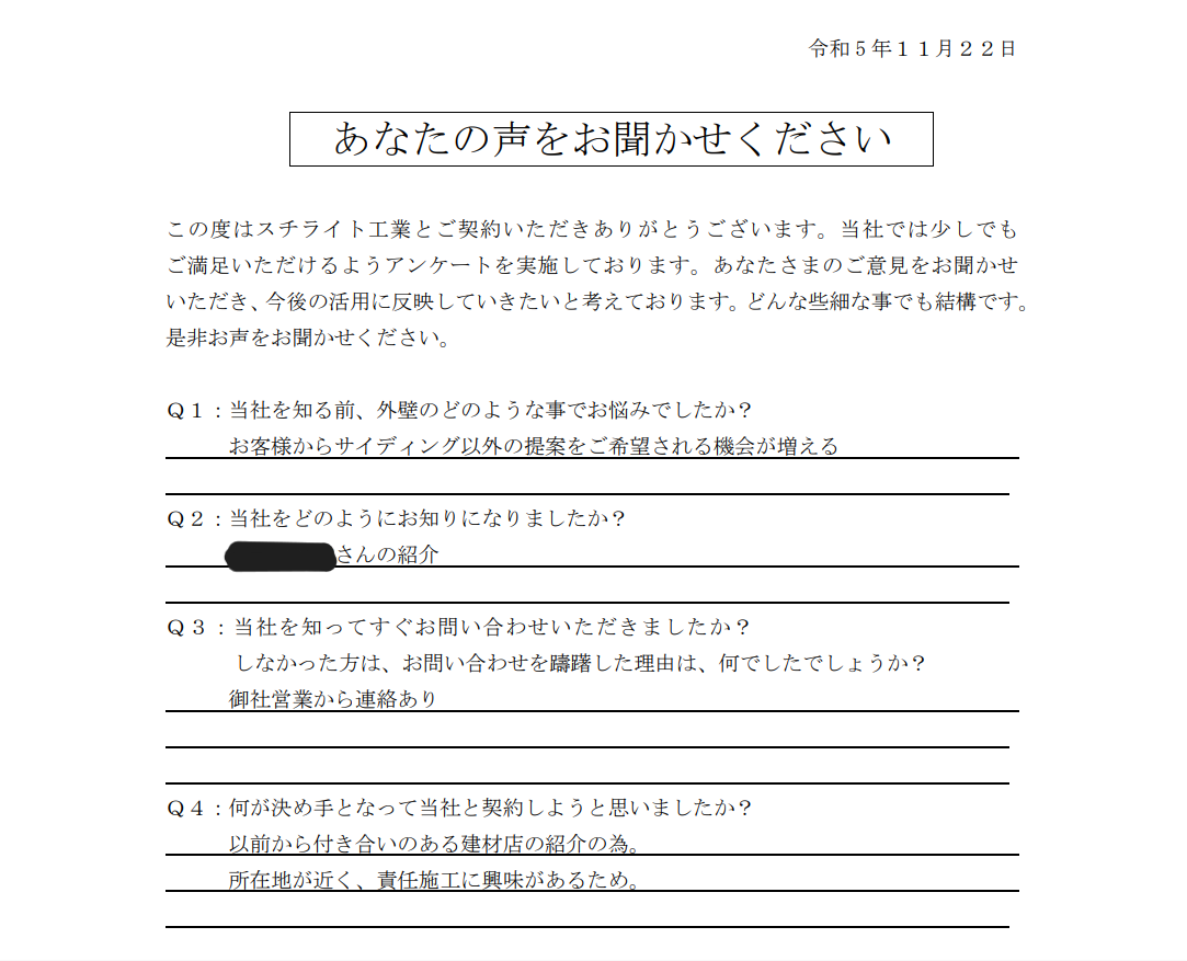 2023.11.22B様 所在地が近く、責任施工に興味があり採用決定!