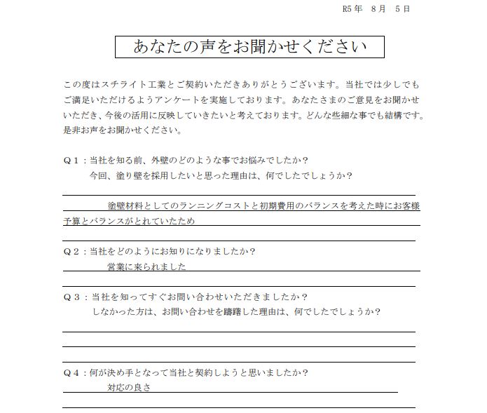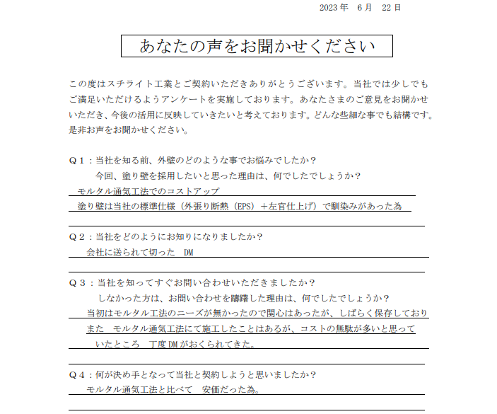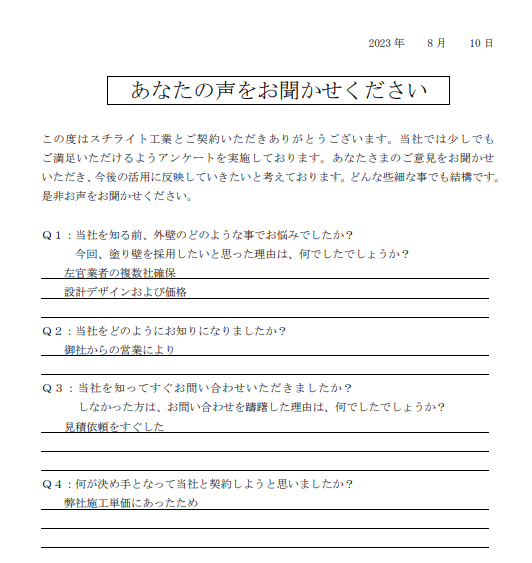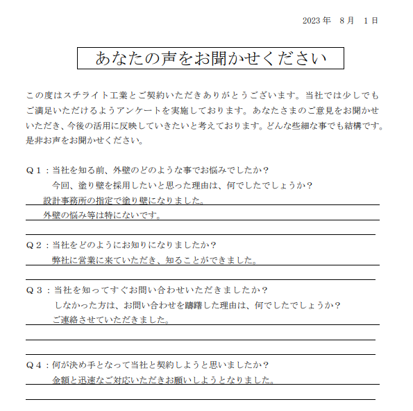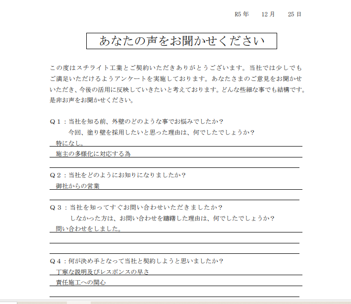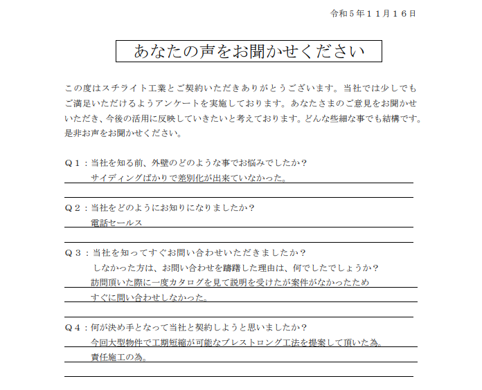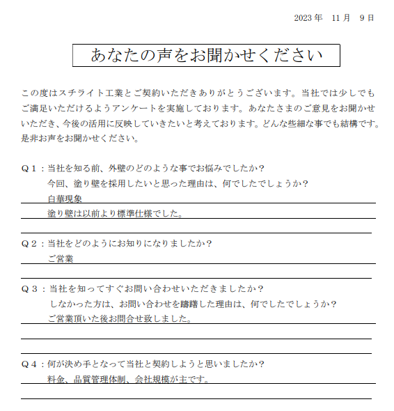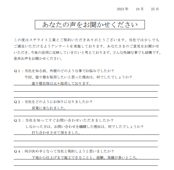 2023.12.25H様 外壁の差別化により採用決定!