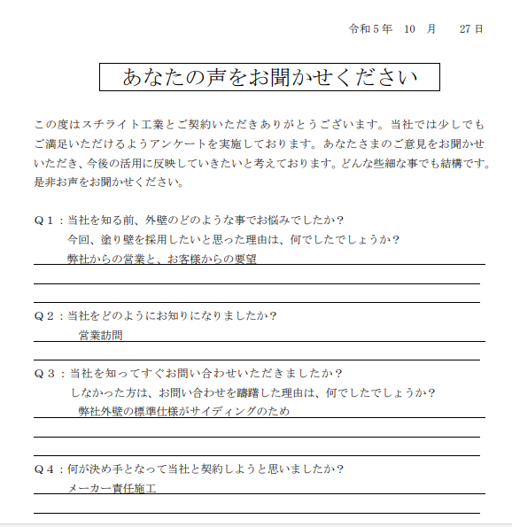 2023.10.27M様 メーカー責任施工で決定!