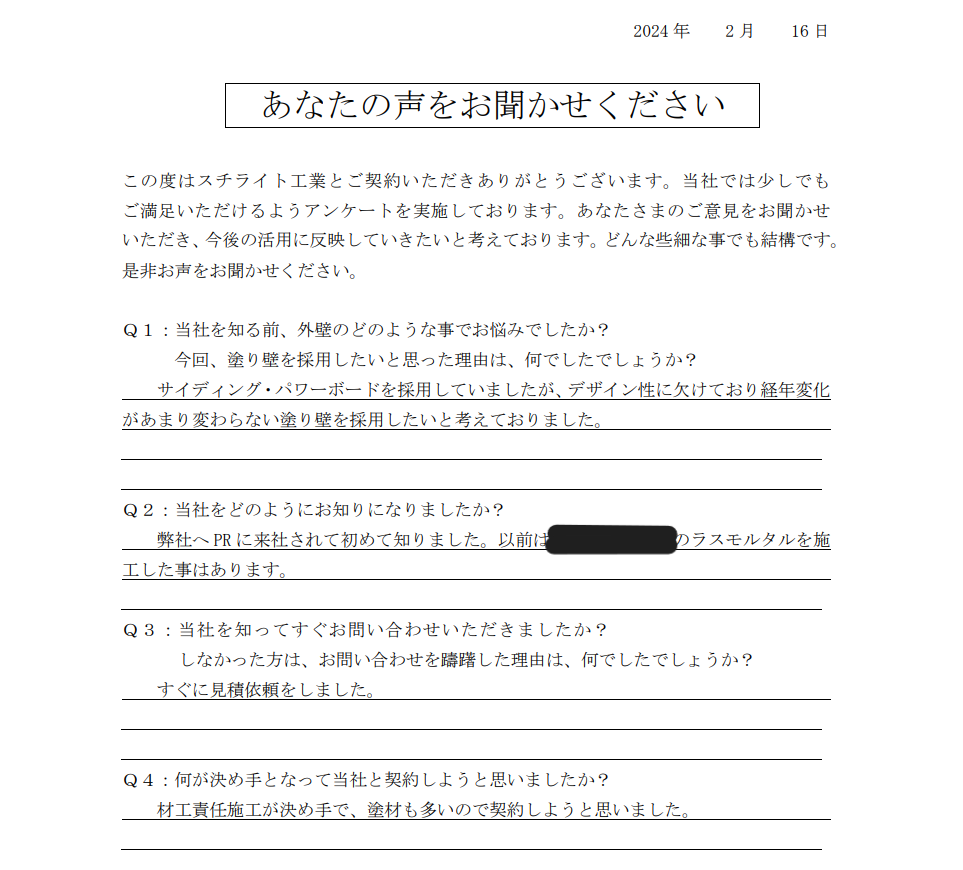 2024.02.16N様 材工責任施工が決め手で採用決定!