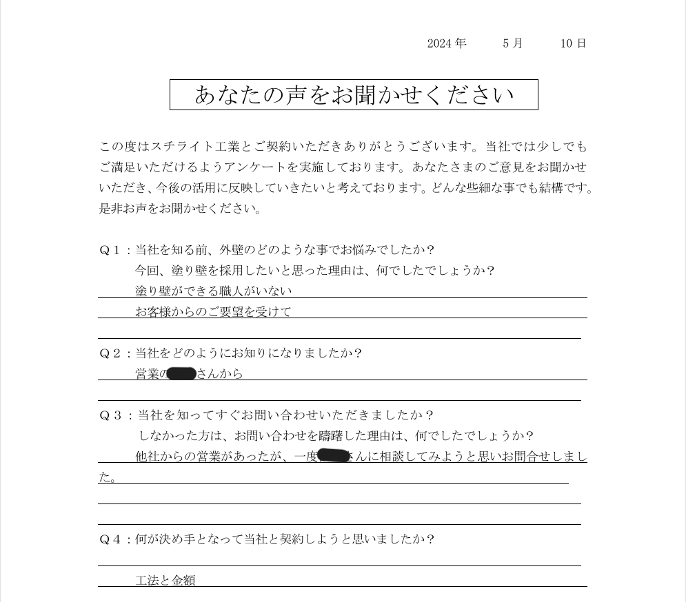 2024.05.10S様 工法と金額で採用決定!